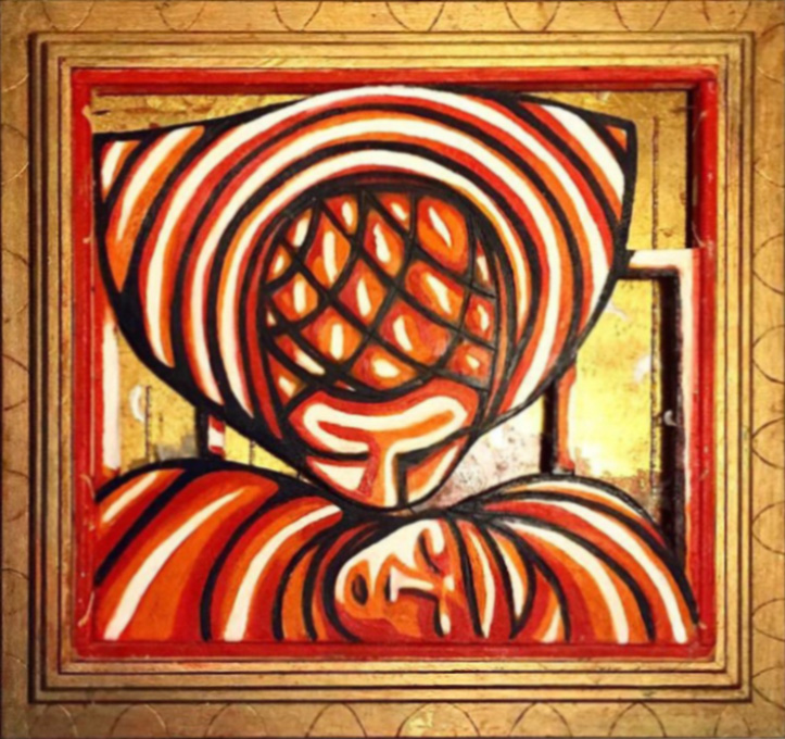 Angel Kiss Oil on burnt wood, gold leaf, 40×40 in. $3000 If interested in purchase, please contact steveolsonartwork@gmail.com Share this: Click to share on X (Opens in new window) X Click to share on Facebook (Opens in new window) Facebook Like Loading...