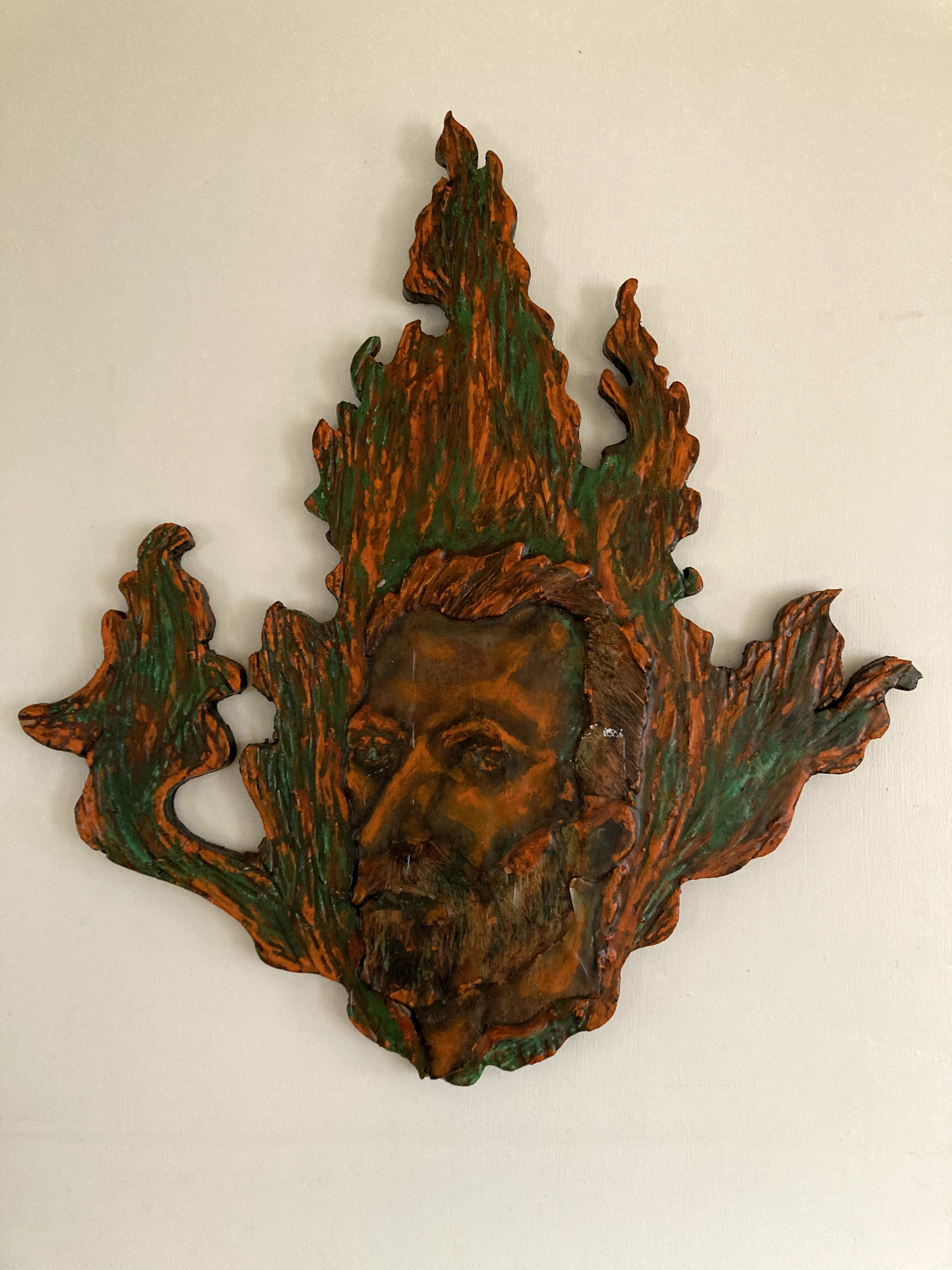 Man on fire: Van Gogh Oil on burnt wood, 23×29 in. $750 If interested in purchase, please contact steveolsonartwork@gmail.com Share this: Click to share on X (Opens in new window) X Click to share on Facebook (Opens in new window) Facebook Like Loading...