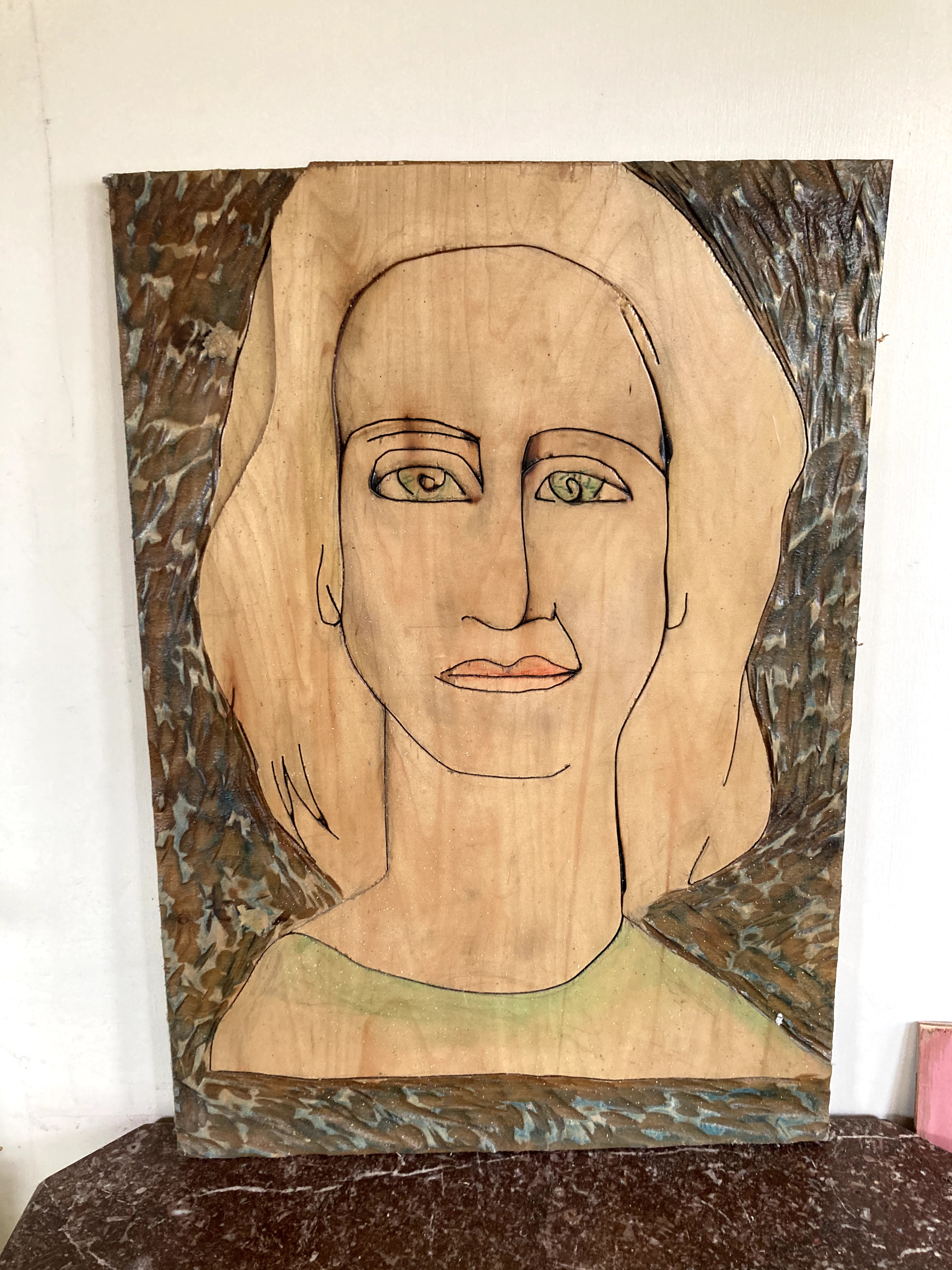 Portrait Oil on burnt, carved wood, 22×31 in. $500 If interested in purchase, please contact steveolsonartwork@gmail.com Share this: Share on X (Opens in new window) X Share on Facebook (Opens in new window) Facebook Like Loading...