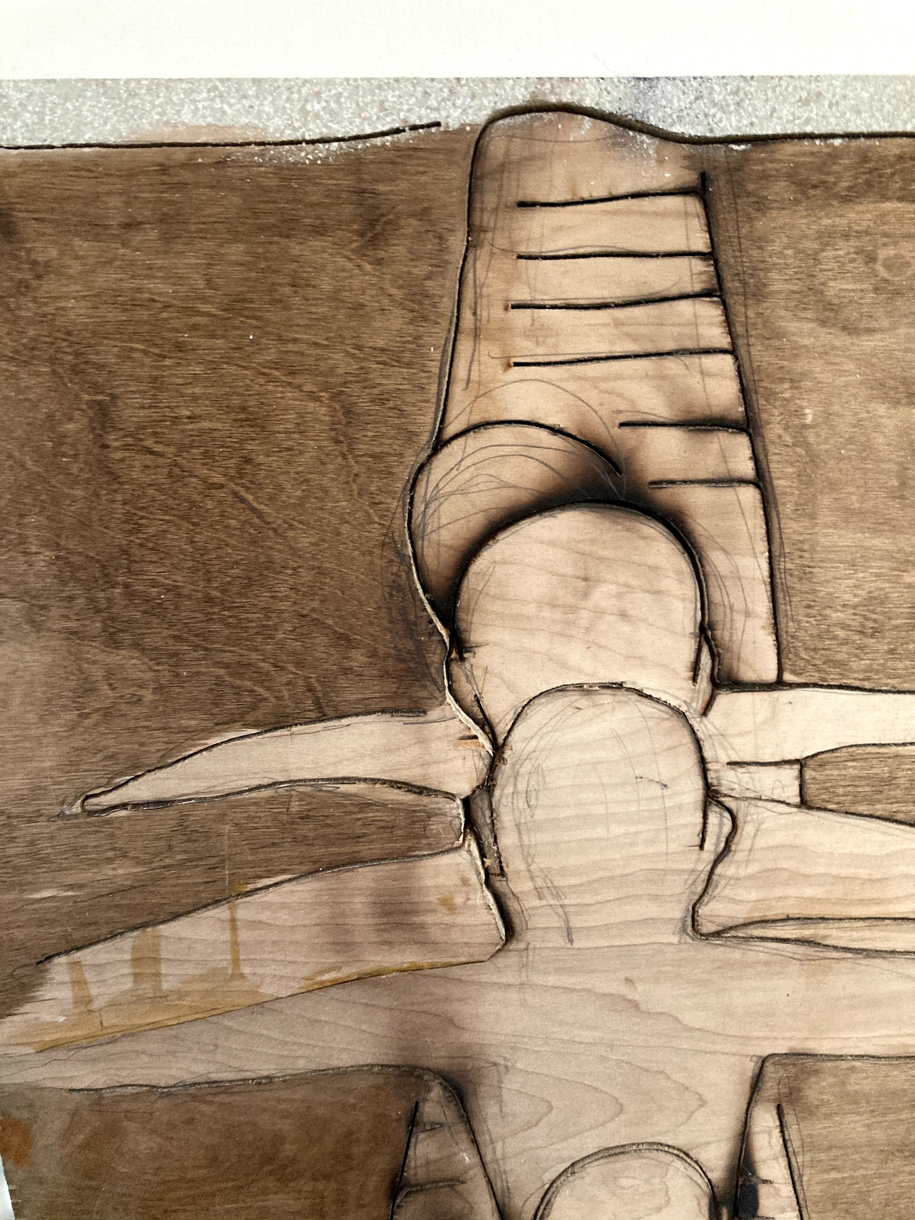 Tightrope Veneer, burnt wood, 18×23 in. $500 If interested in purchase, please contact steveolsonartwork@gmail.com Share this: Click to share on X (Opens in new window) X Click to share on Facebook (Opens in new window) Facebook Like Loading...